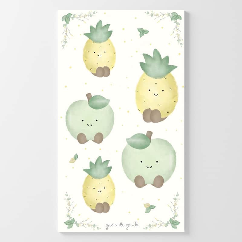 Adesivos de Parede Amiguinhos Abacaxi e Maçã Verde da Grão de Gente: R$ 7,64 no PIX ou R$ 8,99 em até 12x sem juros. Frete grátis acima de R$499. Entrega rastreada com garantia de 7 dias para trocas.