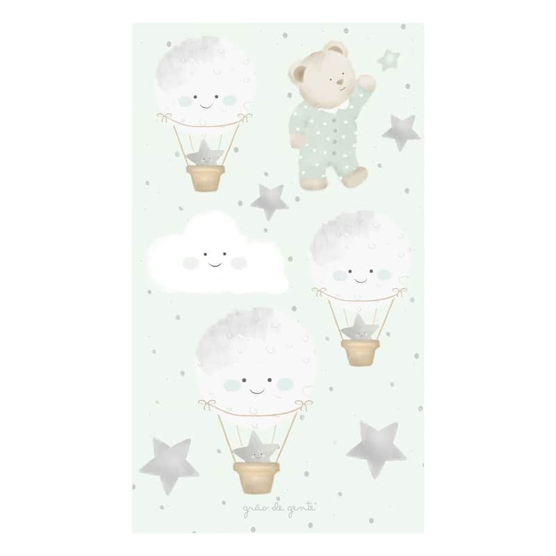 Adesivos de Parede Ursinho, Balões, Nuvem e Estrelas Verde da Grão de Gente: R$ 26,34 no PIX ou R$ 30,99 em até 12x sem juros. Frete grátis acima de R$499. Entrega rastreada com garantia de 7 dias para trocas.