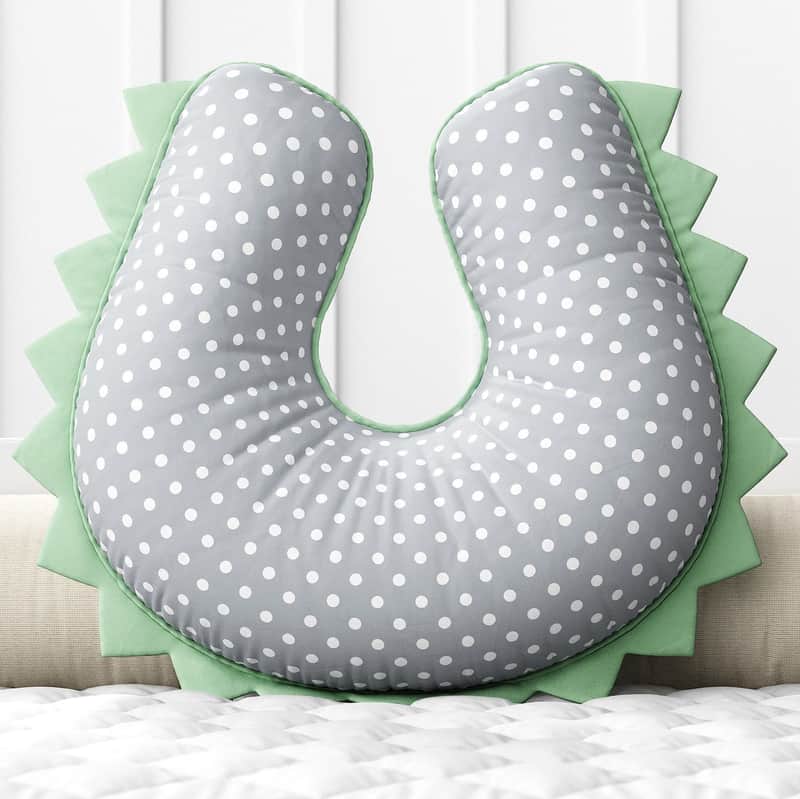 Com enchimento macio e formato em U, a Almofada Amamentação Dino Poá Verde e Cinza permite que o bebê permaneça com conforto na posição adequada durante a amamentação e reduz a tensão muscular nos ombros, braços e pescoço das mamães.