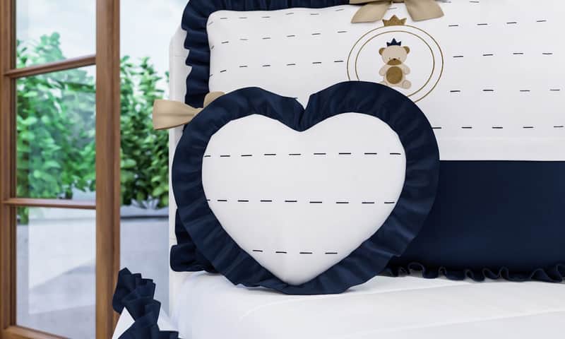 Almofada Coração com Babado Azul Marinho 33cm da Grão de Gente: R$ 45,04 no PIX ou R$ 52,99 em até 12x sem juros. Frete grátis acima de R$499. Entrega rastreada com garantia de 7 dias para trocas.