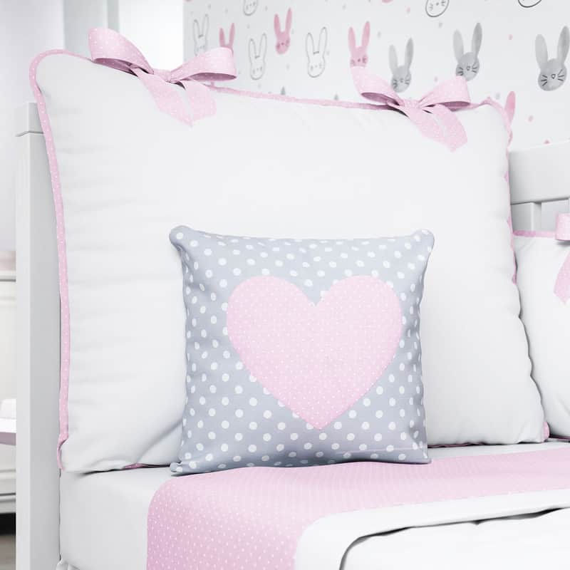 Almofada Coração Rosa/Cinza Poá 26cm da Grão de Gente: R$ 32,29 no PIX ou R$ 37,99 em até 12x sem juros. Frete grátis acima de R$499. Entrega rastreada com garantia de 7 dias para trocas.