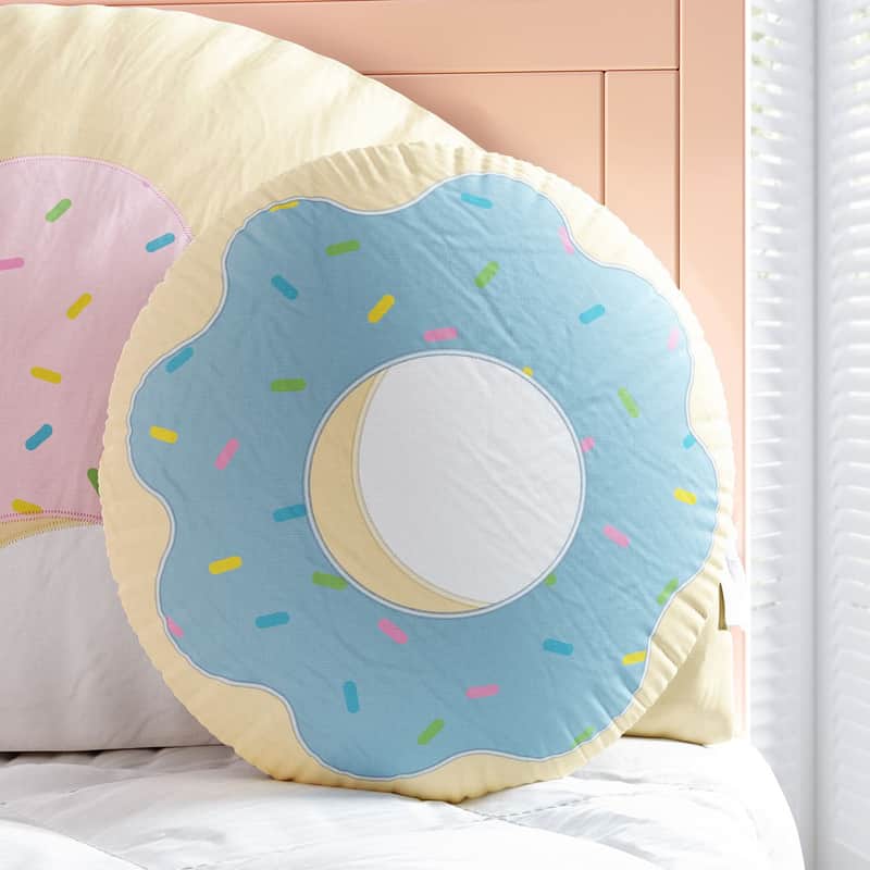 Uma linda almofadinha em formato de rosquinha com cobertura azul e estampa de granulados coloridos chegou para adocicar o quarto de bebê. A Almofada Doce Encanto Donut esbanja fofura e capricho em seus bordados! Além de divertir sua princesinha, essa almofadinha decorativa candy color foi escolhida pela apresentadora Ticiane Pinheiro para o quarto Família Biscoito!