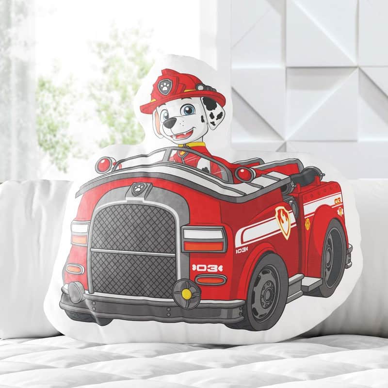 Confeccionada em tecido de toque suave e enchimento macio, a peça encanta com a estampa oficial do patrulheiro Marshall em seu famoso caminhão de bombeiro!