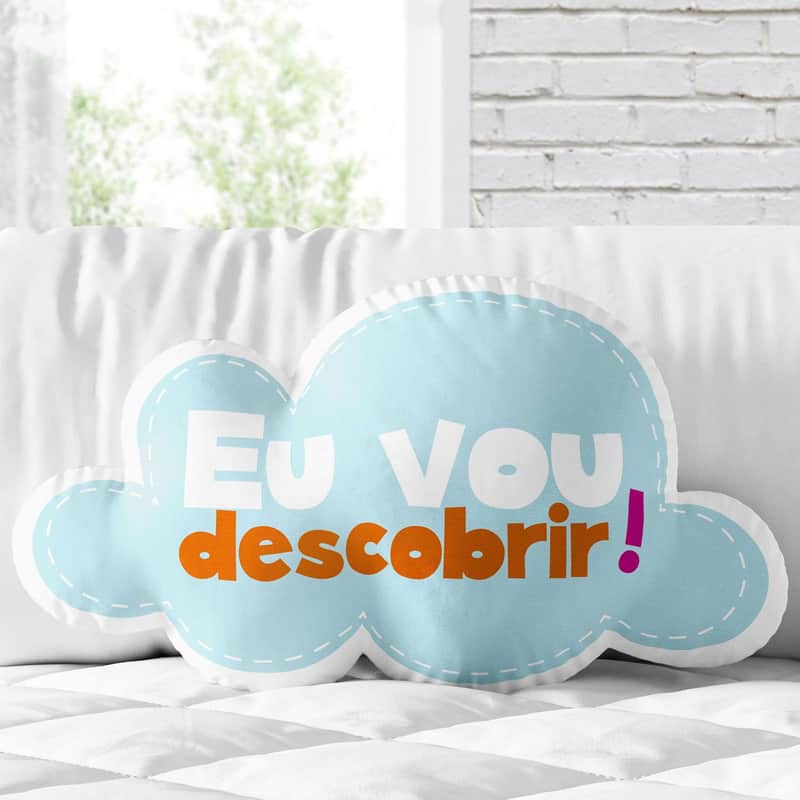 Almofada Nuvem Eu Vou Descobrir da Grão de Gente: R$ 31,44 no PIX ou R$ 36,99 em até 12x sem juros. Frete grátis acima de R$499. Entrega rastreada com garantia de 7 dias para trocas.