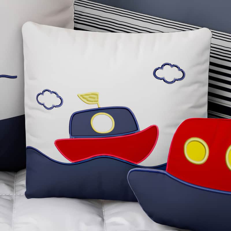 Almofada Quadrada Barquinho Azul Marinho 35cm da Grão de Gente: R$ 37,39 no PIX ou R$ 43,99 em até 12x sem juros. Frete grátis acima de R$499. Entrega rastreada com garantia de 7 dias para trocas.