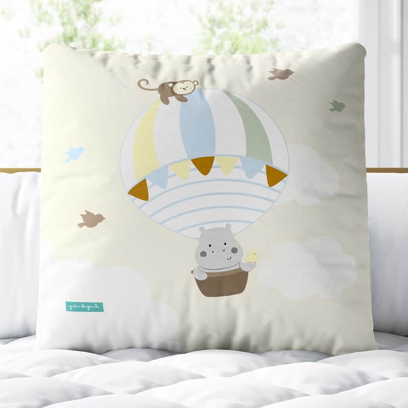 Almofada Quadrada Bichinhos no Balão 30cm da Grão de Gente: R$ 28,04 no PIX ou R$ 32,99 em até 12x sem juros. Frete grátis acima de R$499. Entrega rastreada com garantia de 7 dias para trocas.
