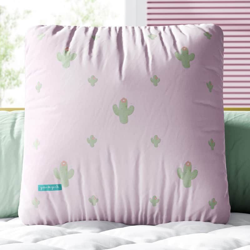 Almofada Quadrada Cactos em Flor Rosa 30cm da Grão de Gente: R$ 28,04 no PIX ou R$ 32,99 em até 12x sem juros. Frete grátis acima de R$499. Entrega rastreada com garantia de 7 dias para trocas.