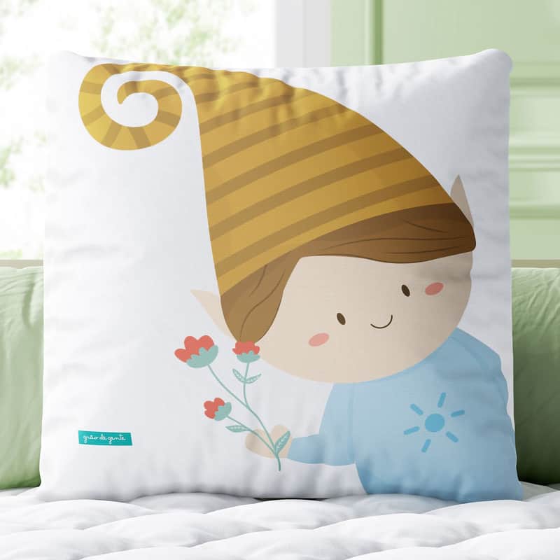Almofada Quadrada Duende Amigo 30cm da Grão de Gente: R$ 28,04 no PIX ou R$ 32,99 em até 12x sem juros. Frete grátis acima de R$499. Entrega rastreada com garantia de 7 dias para trocas.