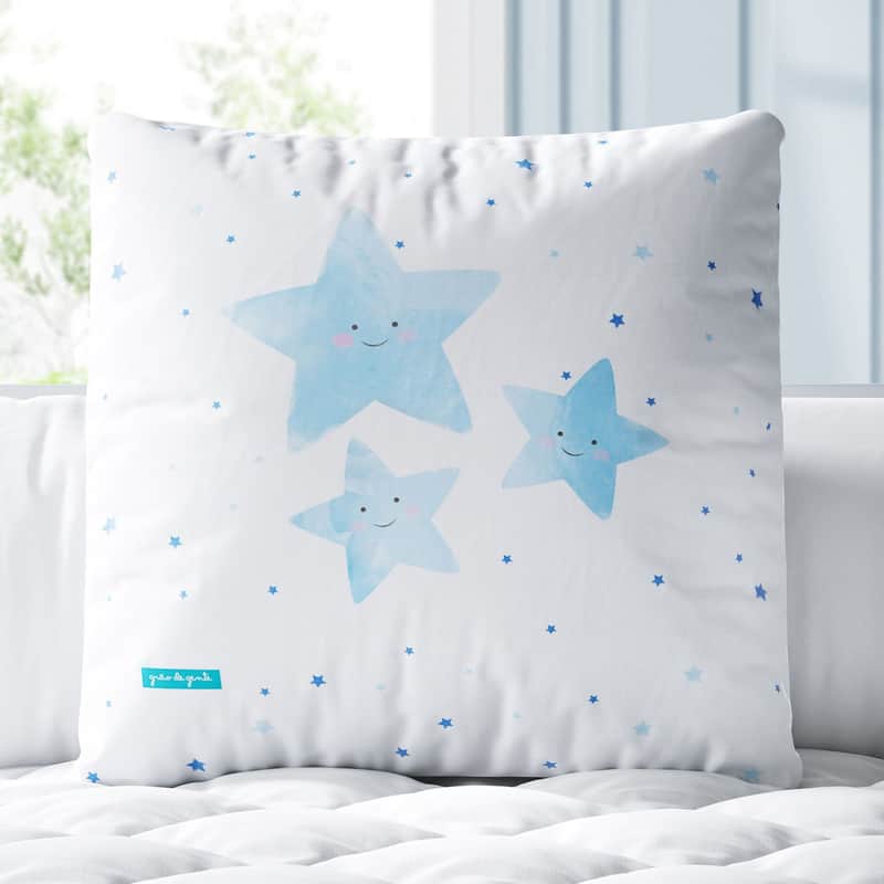Almofada Quadrada Estrelinhas Sorridentes Azul 33cm da Grão de Gente: R$ 28,04 no PIX ou R$ 32,99 em até 12x sem juros. Frete grátis acima de R$499. Entrega rastreada com garantia de 7 dias para trocas.