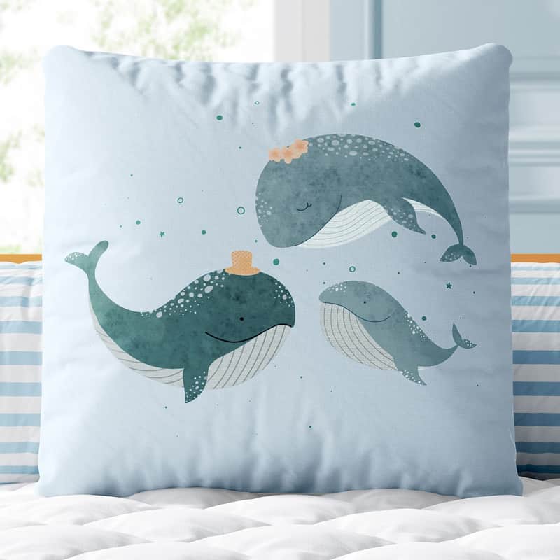Almofada Quadrada Família Baleia 30cm da Grão de Gente: R$ 28,89 no PIX ou R$ 33,99 em até 12x sem juros. Frete grátis acima de R$499. Entrega rastreada com garantia de 7 dias para trocas.