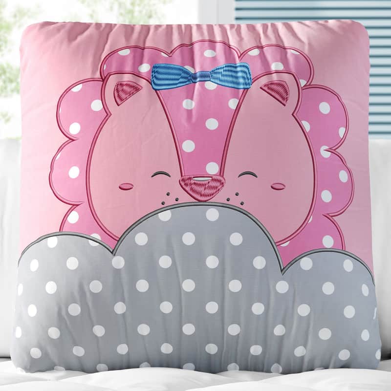 Almofada Quadrada Leoa Rosa Poá 30cm da Grão de Gente: R$ 50,99 no PIX ou R$ 59,99 em até 12x sem juros. Frete grátis acima de R$499. Entrega rastreada com garantia de 7 dias para trocas.