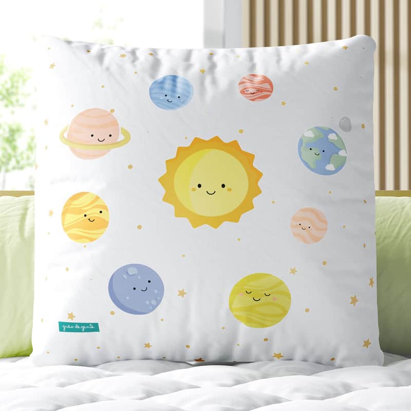 Almofada Quadrada Sistema Solar 30cm da Grão de Gente: R$ 47,59 no PIX ou R$ 55,99 em até 12x sem juros. Frete grátis acima de R$499. Entrega rastreada com garantia de 7 dias para trocas.