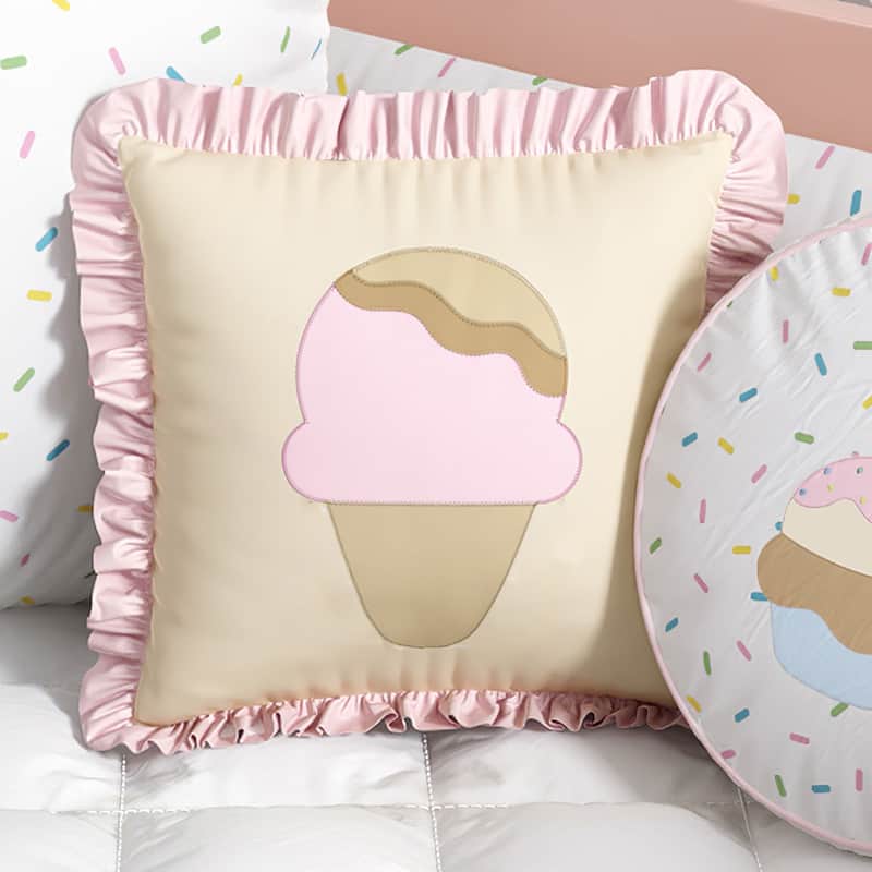 Almofada Quadrada Sorvete Doce Sonho Rosa 38cm da Grão de Gente: R$ 35,69 no PIX ou R$ 41,99 em até 12x sem juros. Frete grátis acima de R$499. Entrega rastreada com garantia de 7 dias para trocas.