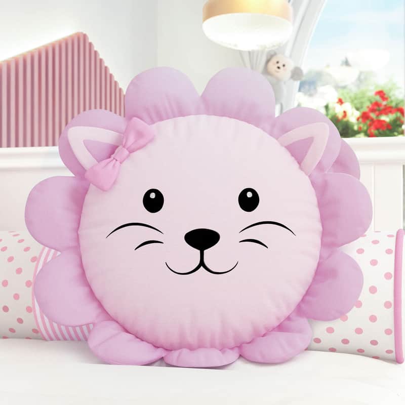 Almofada Redonda Amiguinha Leoa Rosa 30cm da Grão de Gente: R$ 21,24 no PIX ou R$ 24,99 em até 12x sem juros. Frete grátis acima de R$499. Entrega rastreada com garantia de 7 dias para trocas.