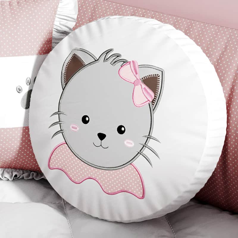 Almofada Redonda Gatinha Rosa 35cm da Grão de Gente: R$ 26,34 no PIX ou R$ 30,99 em até 12x sem juros. Frete grátis acima de R$499. Entrega rastreada com garantia de 7 dias para trocas.