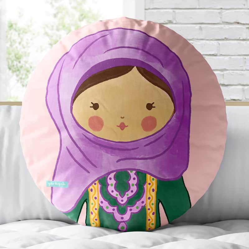 Almofada Redonda Meninas do Mundo Aysha 30cm da Grão de Gente: R$ 24,64 no PIX ou R$ 28,99 em até 12x sem juros. Frete grátis acima de R$499. Entrega rastreada com garantia de 7 dias para trocas.
