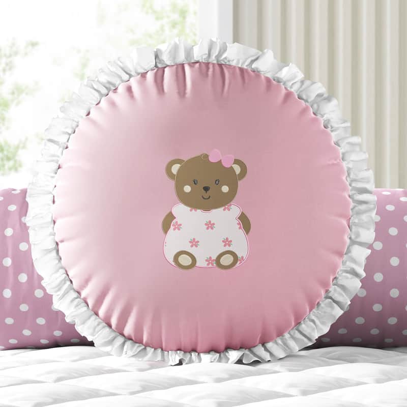 Almofada Redonda Ursinha Floral Rosa 38cm da Grão de Gente: R$ 62,04 no PIX ou R$ 72,99 em até 12x sem juros. Frete grátis acima de R$499. Entrega rastreada com garantia de 7 dias para trocas.