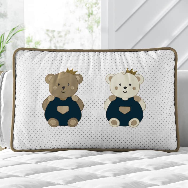 Almofada Retangular Ursinhos Realeza Poá 40cm da Grão de Gente: R$ 31,44 no PIX ou R$ 36,99 em até 12x sem juros. Frete grátis acima de R$499. Entrega rastreada com garantia de 7 dias para trocas.