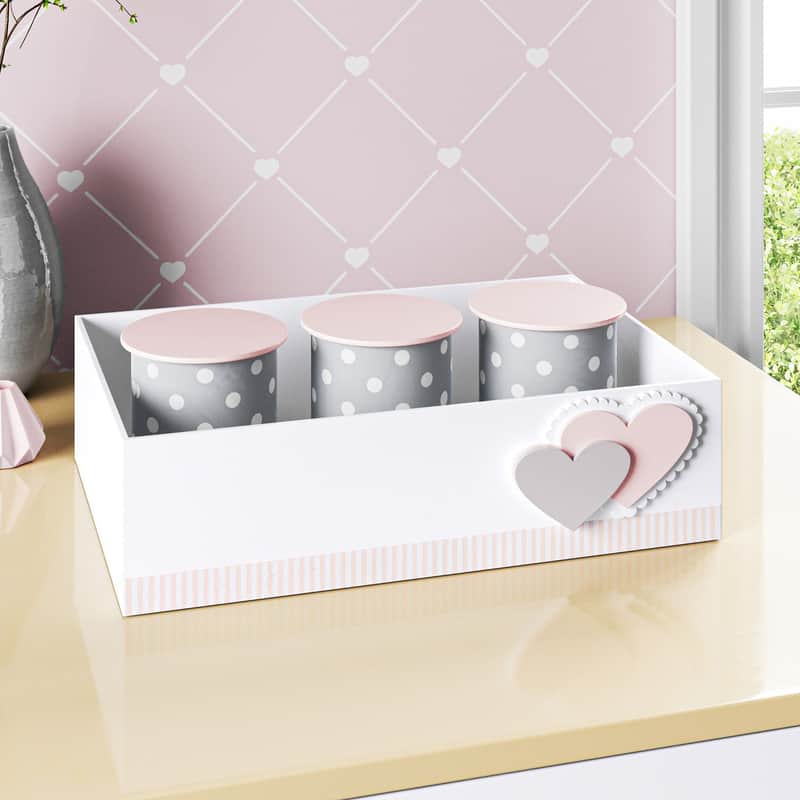 Bandeja MDF Coração Rosa e Cinza da Grão de Gente: R$ 62,89 no PIX ou R$ 73,99 em até 12x sem juros. Frete grátis acima de R$499. Entrega rastreada com garantia de 7 dias para trocas.