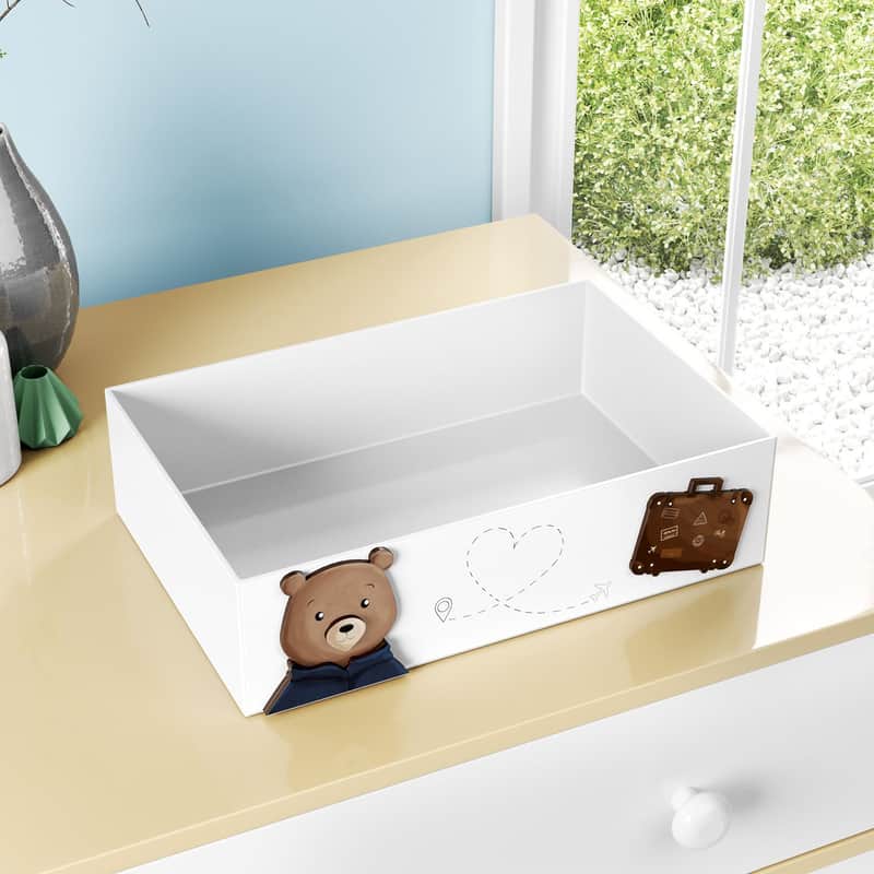 Os cestos organizadores são peças versáteis e decorativas para o quarto do bebê. Além de guardar brinquedos, fraldas e roupas de forma prática, adicionam charme ao ambiente com seus temas e cores. Na Grão de Gente, os cestos são produzidos em tecido reforçado, com alças laterais e estrutura que mantém o formato. Disponíveis em diversos tamanhos, são perfeitos para nichos, estantes e cantinhos do quarto.
