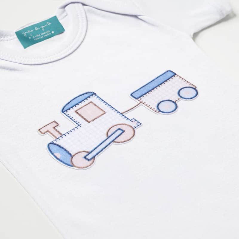 Body Manga Curta Trenzinho Bege e Azul Tam P da Grão de Gente: R$ 24,64 no PIX ou R$ 28,99 em até 12x sem juros. Frete grátis acima de R$499. Entrega rastreada com garantia de 7 dias para trocas.