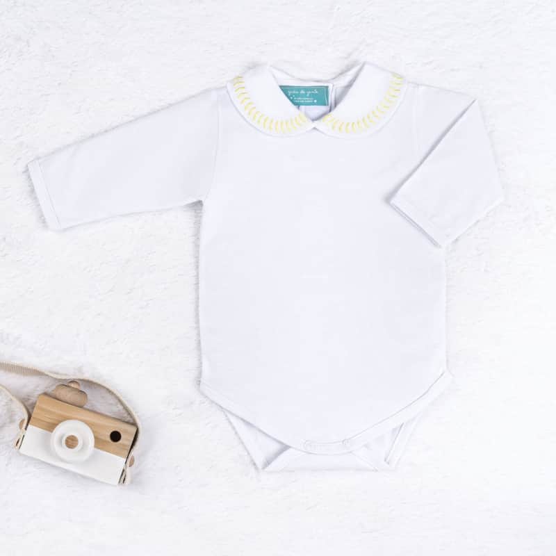 Body Manga Longa Bordado Gola Bebê Amarelo da Grão de Gente: R$ 56,09 no PIX ou R$ 65,99 em até 12x sem juros. Frete grátis acima de R$499. Entrega rastreada com garantia de 7 dias para trocas.