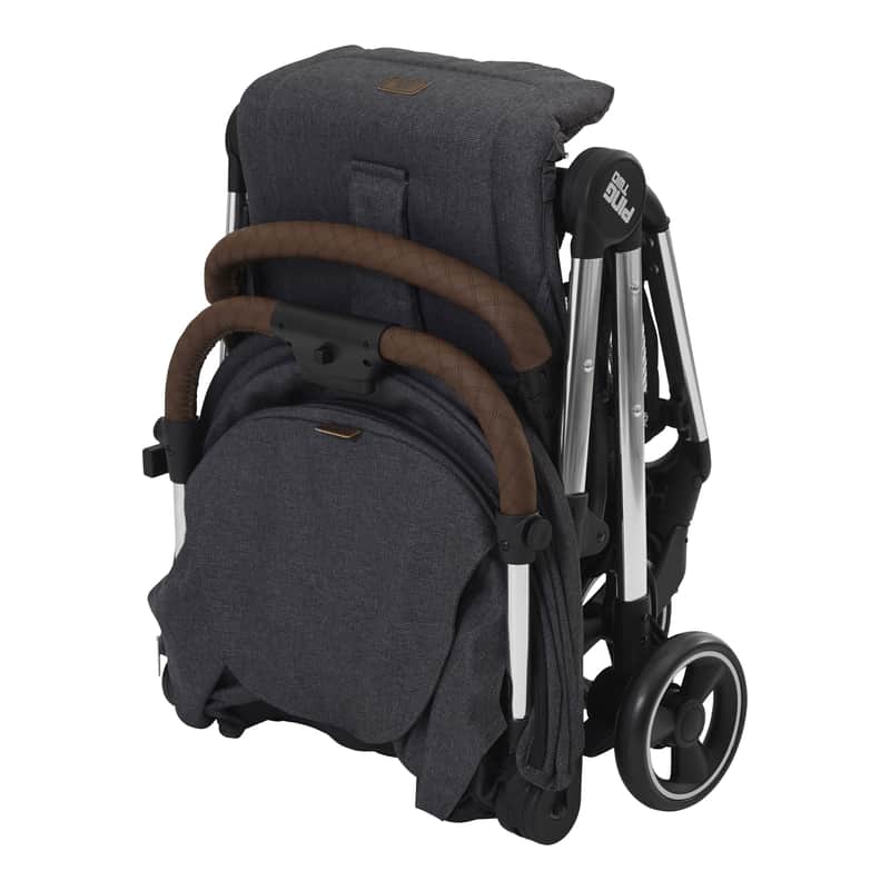Com design alemão moderno e compacto, o carrinho se destaca pela facilidade em seu manuseio. Possui sistema de travamento automático, que pode ser acionado com apenas uma mão, possuindo uma alça tiracolo e tamanho ideal para caber perfeitamente no porta-malas ou no compartimento interno de aviões.