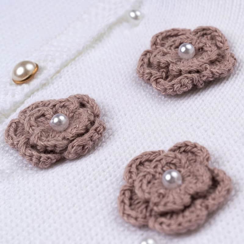 Casaquinho Tricot Ladylike Flor Branco e Nude Rosé da Grão de Gente: R$ 131,74 no PIX ou R$ 154,99 em até 12x sem juros. Frete grátis acima de R$499. Entrega rastreada com garantia de 7 dias para trocas.