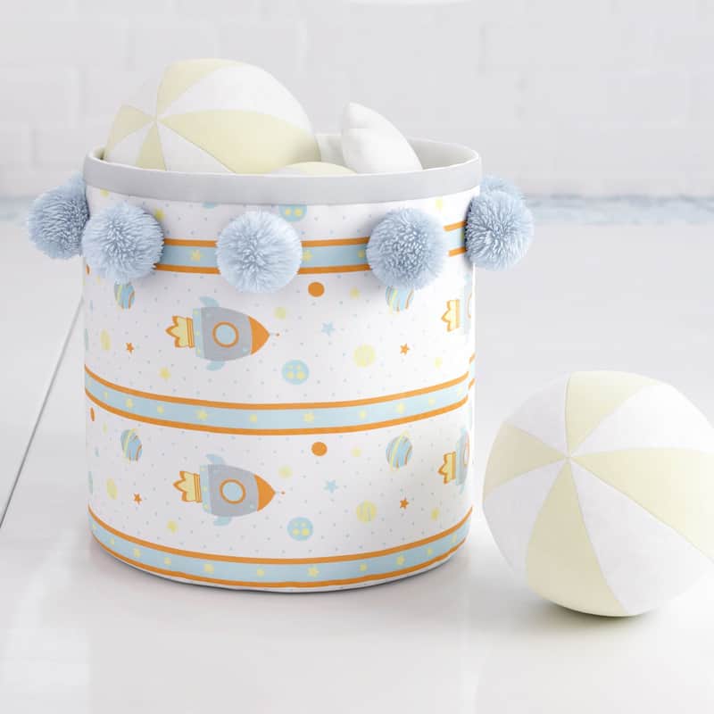 Cesto Organizador para Brinquedos Pompom e Babado Chuva de Amor 35cm