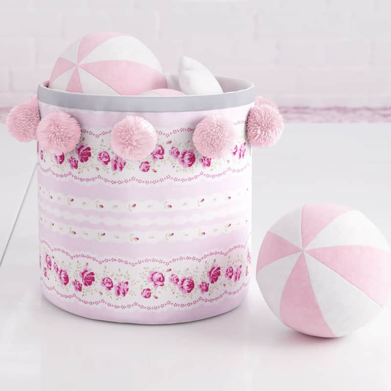 Cesto Organizador para Brinquedos Pompom e Babado Chuva de Amor 35cm