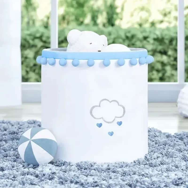 Cesto Organizador para Brinquedos Pompom e Babado Chuva de Amor 35cm