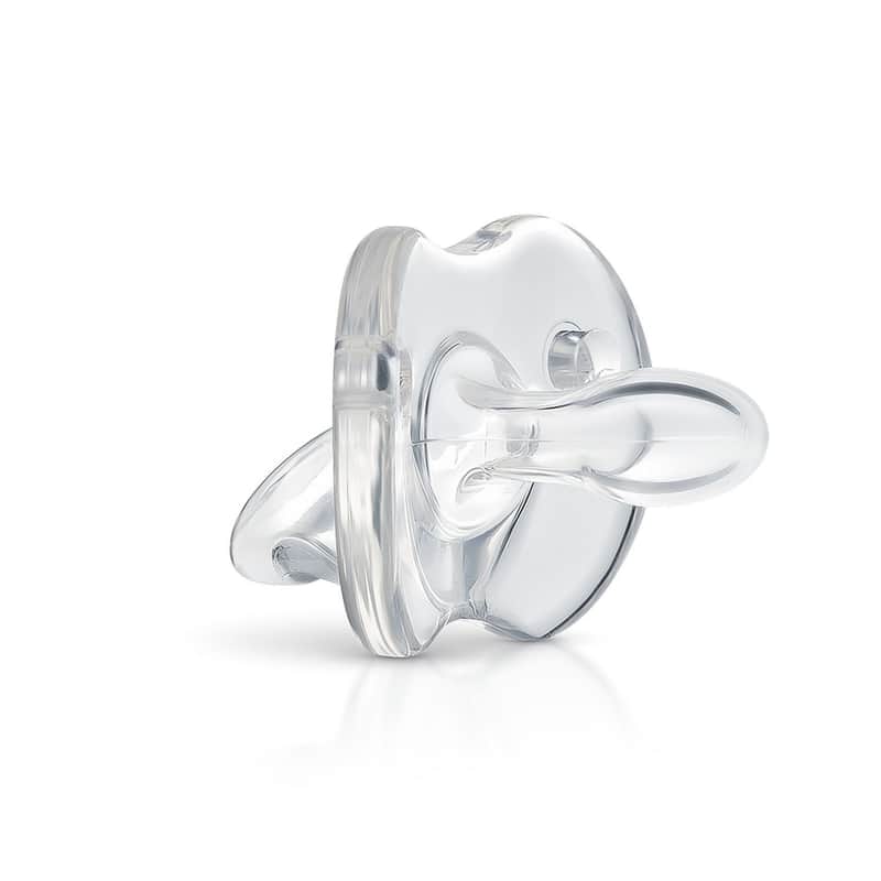 Com design que facilita a respiração nasal e bico de silicone simétrico, especialmente projetado para o uso da chupeta dos dois lados.