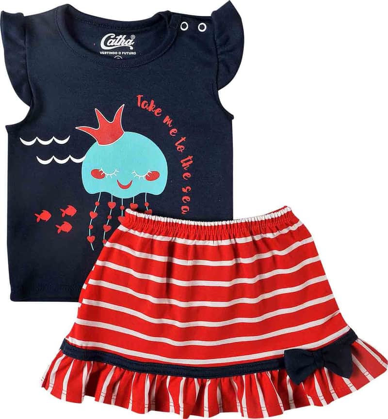 Conjunto Curto Bebê Marinho Saia da Clube da Roupinha: R$ 72,24 no PIX ou R$ 84,99 em até 12x sem juros. Frete grátis acima de R$499. Entrega rastreada com garantia de 7 dias para trocas.