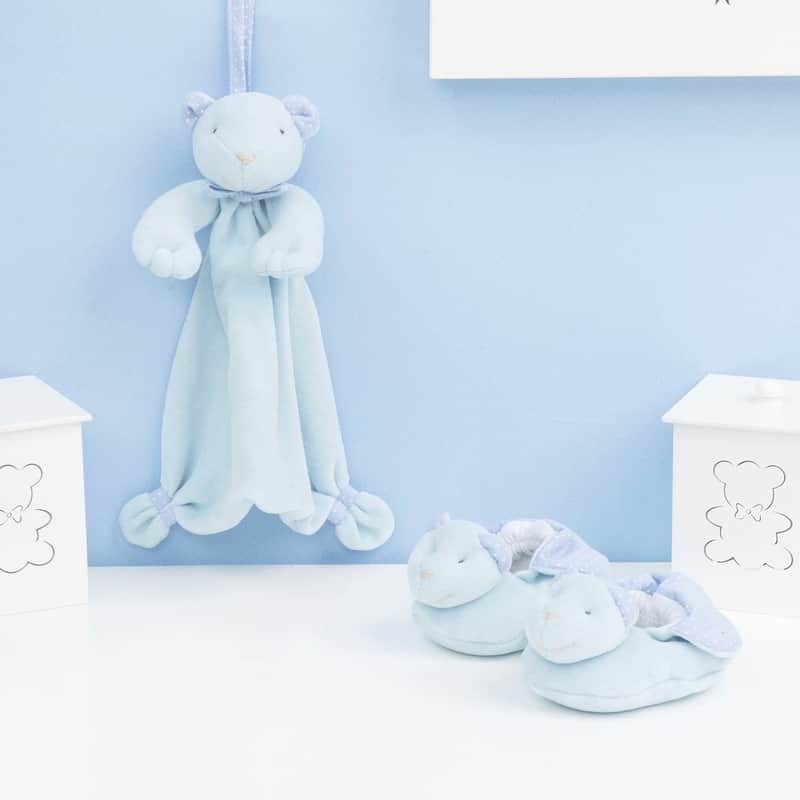 Conjunto Naninha De Bebê e Pantufa Poá Azul