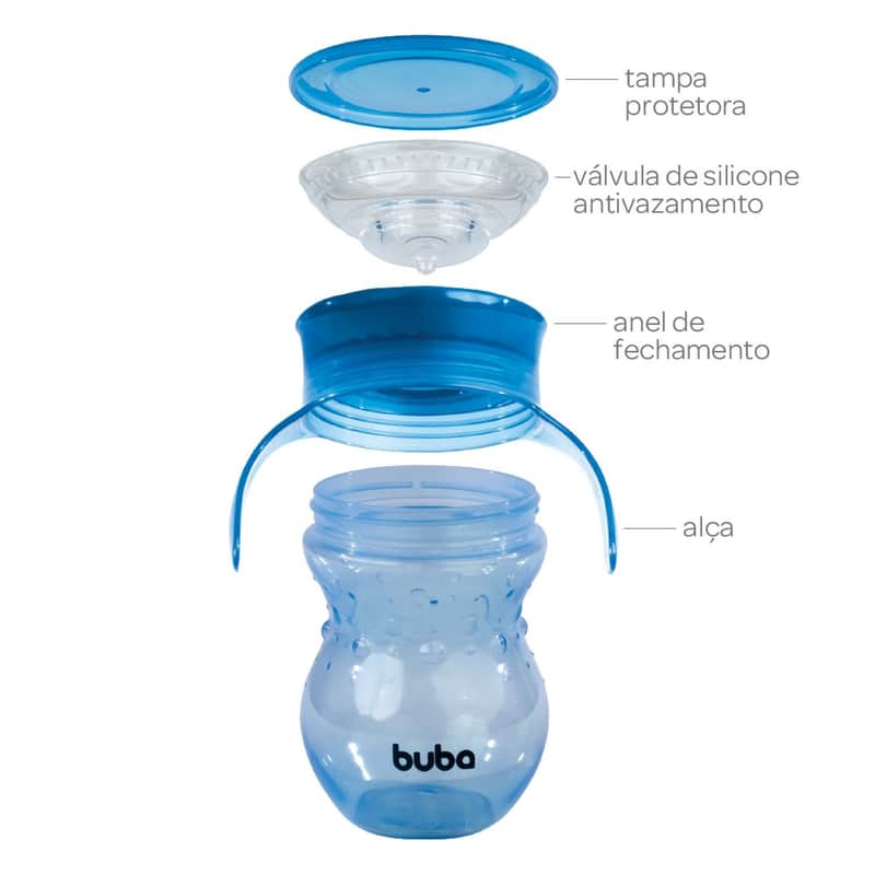 Copo de Treinamento 360º com Alça Azul da Buba: R$ 33,14 no PIX ou R$ 38,99 em até 12x sem juros. Frete grátis acima de R$499. Entrega rastreada com garantia de 7 dias para trocas.