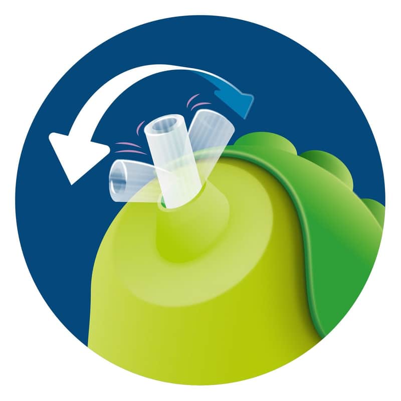 Com um design atrativo e canudo curvado de silicone com tampa, o acessório possui textura anti-deslizante e alças que estimula a autonomia da criança, permitindo que tome o líquido sozinha durante as refeições com mais tranquilidade e segurança.