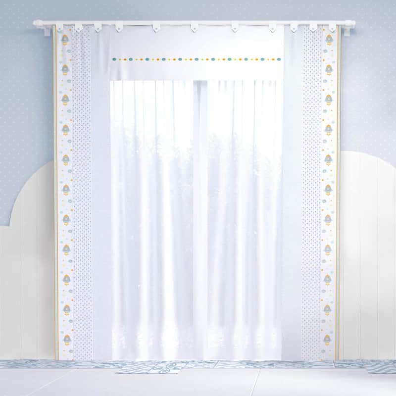 Cortina Astronauta Patchwork Azul 1,50m da Grão de Gente: R$ 202,29 no PIX ou R$ 237,99 em até 12x sem juros. Frete grátis acima de R$499. Entrega rastreada com garantia de 7 dias para trocas.