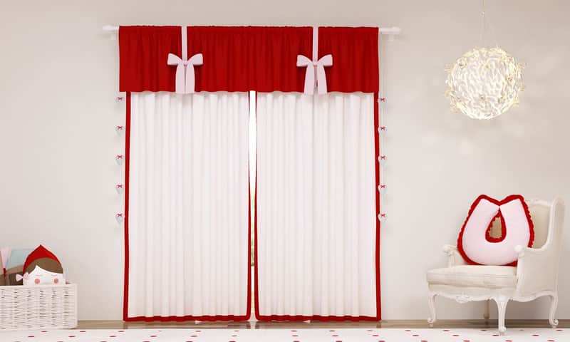 Cortina Clássica com Laços Rosa e Branco