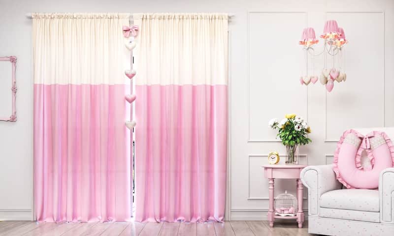 Cortina Clássica com Laços Rosa e Branco