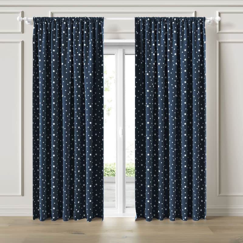 Cortina Infantil e Bebê Estrelinhas Branco e Azul Marinho