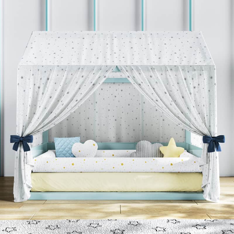 Cortina para Cama Casinha Montessoriana Branca Estrelas e Via Láctea