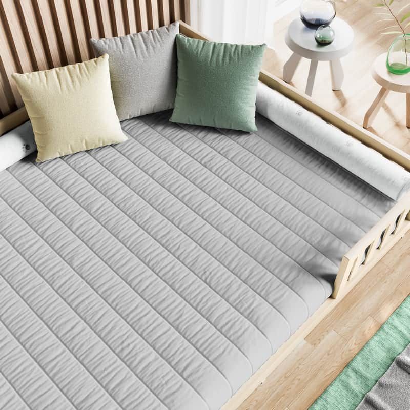 Edredom Casal Montessoriano Cinza da Grão de Gente: R$ 203,14 no PIX ou R$ 238,99 em até 12x sem juros. Frete grátis acima de R$499. Entrega rastreada com garantia de 7 dias para trocas.
