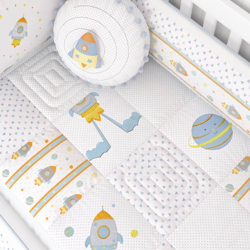 Edredom de Berço Astronauta Patchwork Azul da Grão de Gente: R$ 152,14 no PIX ou R$ 178,99 em até 12x sem juros. Frete grátis acima de R$499. Entrega rastreada com garantia de 7 dias para trocas.