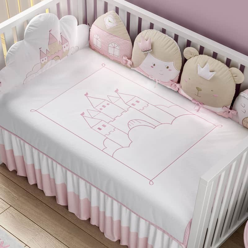 Edredom de Berço Bordado Castelo da Grão de Gente: R$ 124,94 no PIX ou R$ 146,99 em até 12x sem juros. Frete grátis acima de R$499. Entrega rastreada com garantia de 7 dias para trocas.