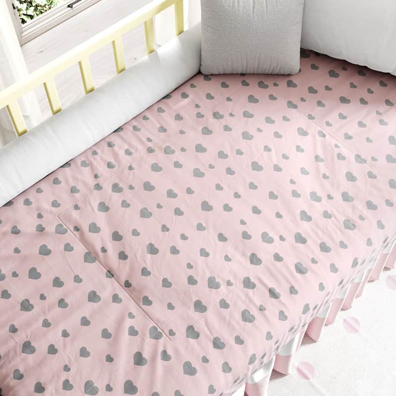 Edredom de Berço Coração Chevron Rosa da Grão de Gente: R$ 55,24 no PIX ou R$ 64,99 em até 12x sem juros. Frete grátis acima de R$499. Entrega rastreada com garantia de 7 dias para trocas.