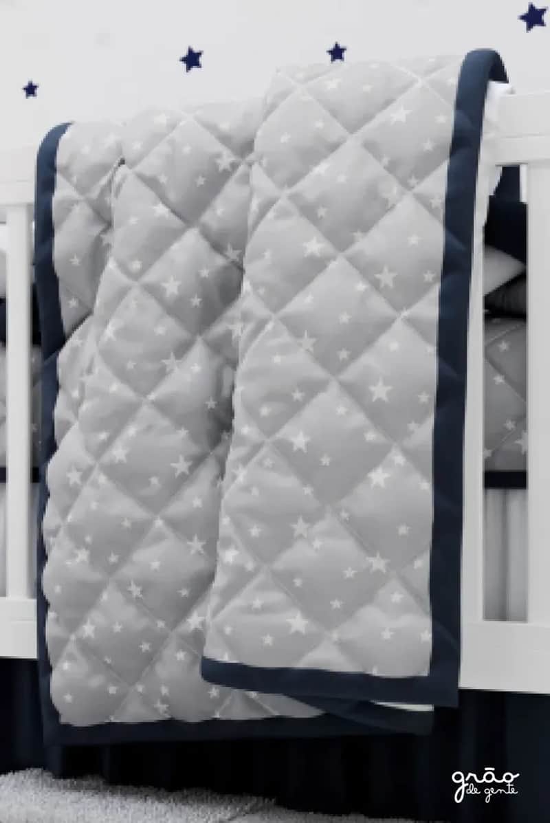 Edredom de Berço Matelado Estrelinhas Cinza/Azul Marinho, da marca Grão de Gente, está disponível na Grão de Gente na categoria Edredom. A partir de R$ 136,84 no PIX ou R$ 160,99 em até 12x sem juros no cartão de crédito. Frete grátis para compras acima de R$499. Todos os nossos produtos passam por controle de qualidade e seguem normas de segurança. Garantia de 7 dias para trocas e devoluções.