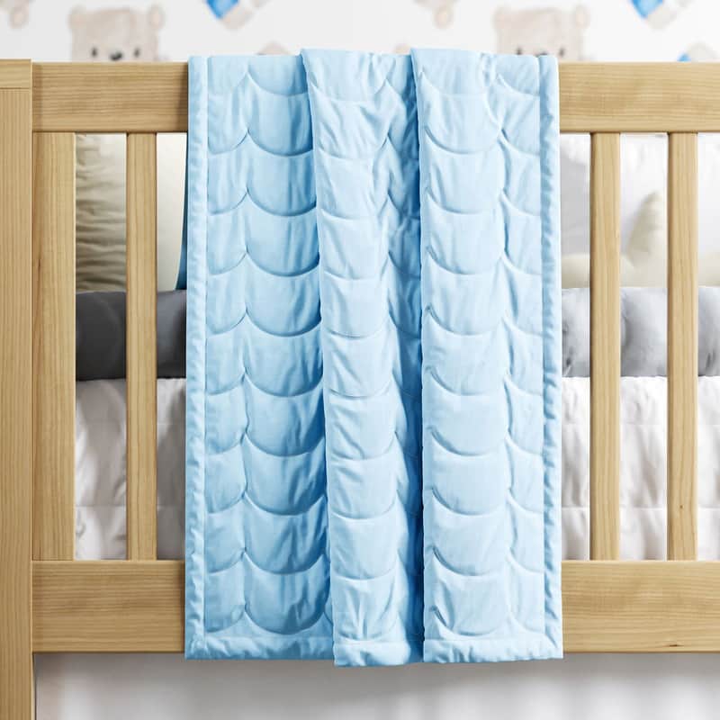 Edredom de Berço Matelassê Ondinha Azul da Grão de Gente: R$ 99,44 no PIX ou R$ 116,99 em até 12x sem juros. Frete grátis acima de R$499. Entrega rastreada com garantia de 7 dias para trocas.