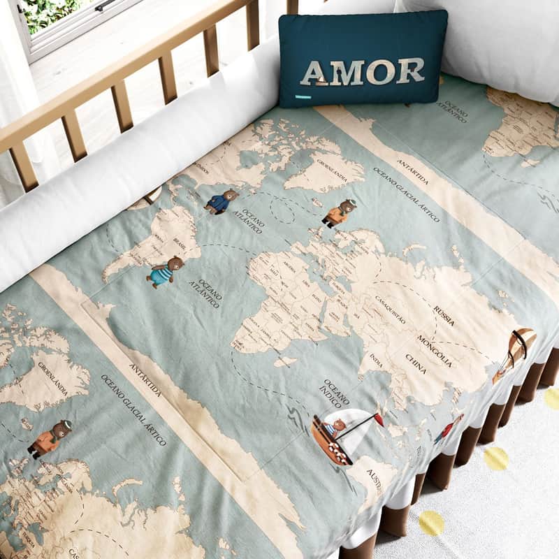 Edredom de Berço Teddy pelo Mundo da Grão de Gente: R$ 99,44 no PIX ou R$ 116,99 em até 12x sem juros. Frete grátis acima de R$499. Entrega rastreada com garantia de 7 dias para trocas.