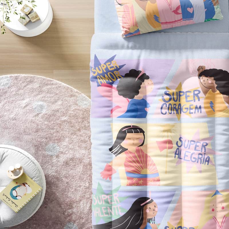 Edredom Infantil Solteiro Heroínas da Grão de Gente: R$ 131,74 no PIX ou R$ 154,99 em até 12x sem juros. Frete grátis acima de R$499. Entrega rastreada com garantia de 7 dias para trocas.