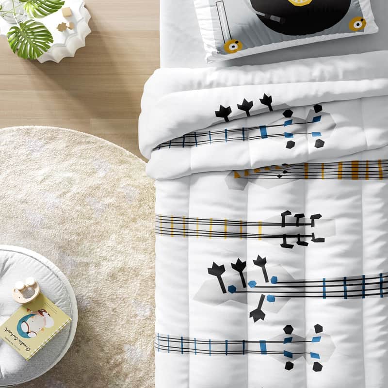 Edredom Infantil Solteiro Música da Grão de Gente: R$ 133,44 no PIX ou R$ 156,99 em até 12x sem juros. Frete grátis acima de R$499. Entrega rastreada com garantia de 7 dias para trocas.